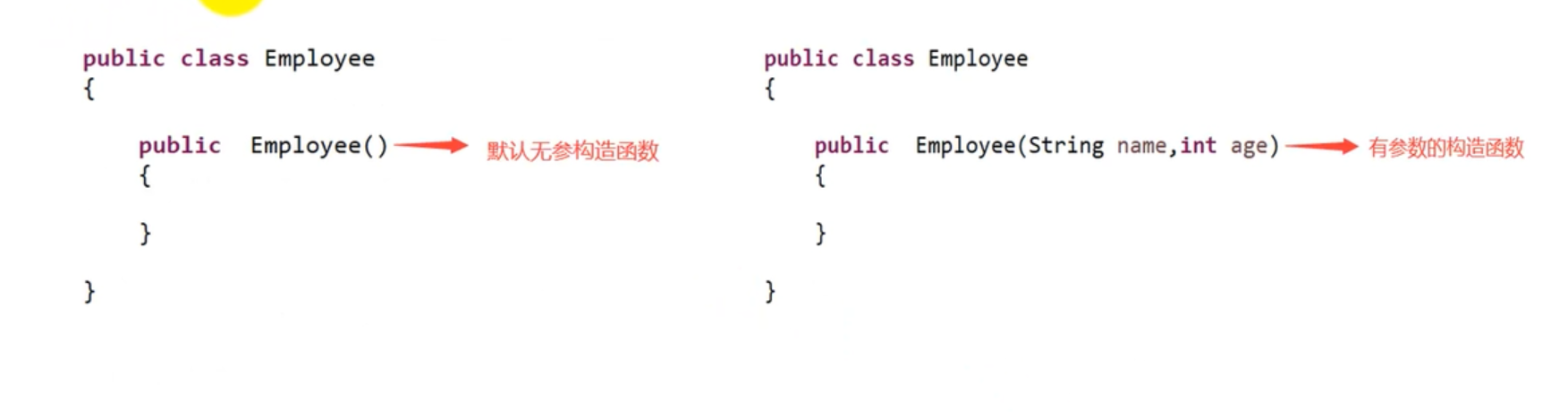 其中参数列表可有可无,无参数列表的构造函数为默认构造函数,无论有参还是无参的构造函数都不能有返回值,但是可以有return;关键字(后面不能跟具体的值);