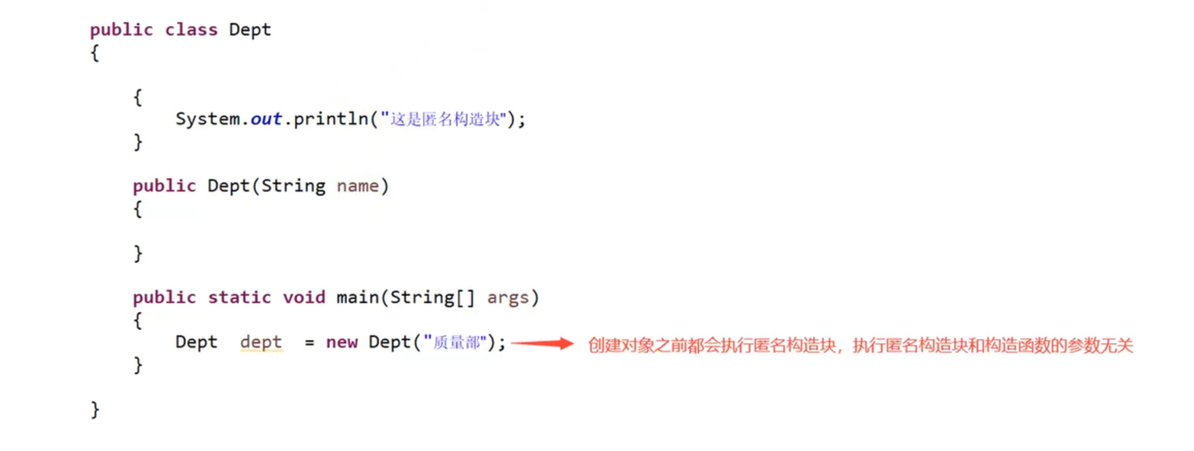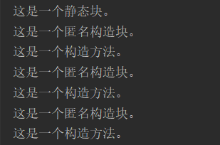 他们的执行顺序为:静态代码块最先执行并且无论创建多少次该类对象都只调用一次,接着调用匿名构造块,最后调用构造方法,并且每次创建对象的时候都会调用一次匿名构造块和构造方法。