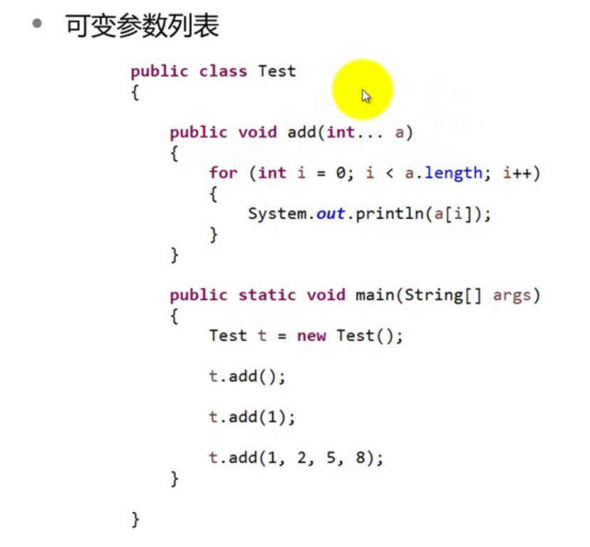 下图中为可变参数列表,其中int...a为可以传0个参数,也可以传多个参数。