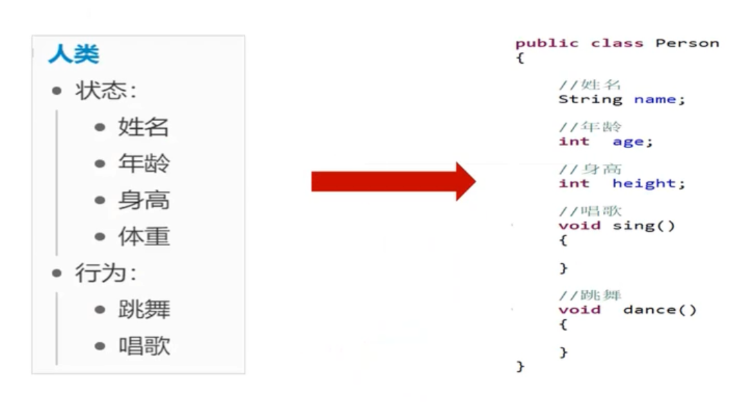 例1:人具有身高,体重,年龄,血型,性别等一些特征,人会劳动,会行走,会吃饭等这些方法,人仅仅是一个抽象的概念,它是不存在的实体,但是所有具备人这个群体的属性与方法的对象都叫做人,其中人就是抽象出来的类模板,而具体的某人(张三、李四、小助手。。。)就是实际存在的实体即为对象,因此我们可以总结出来每个人(具体的人,张三、李四、小助手。。。)都是人这个群体(类)的一个对象。