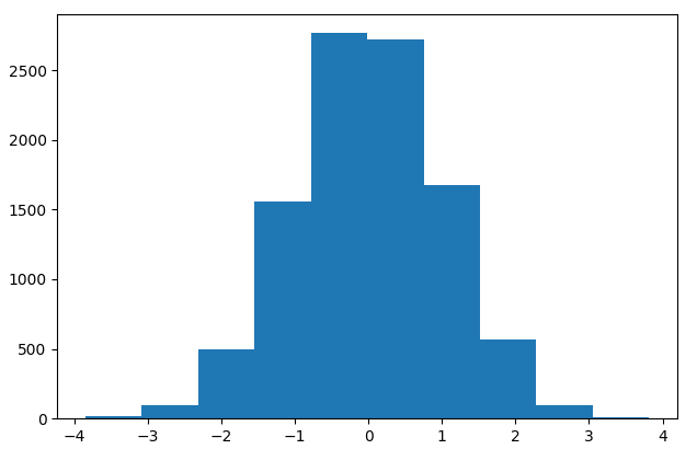 其中,np.random.normal(0,1,10000) 函数说明如下,np.random.normal() 是一个正态分布,normal这里是正态的意思。