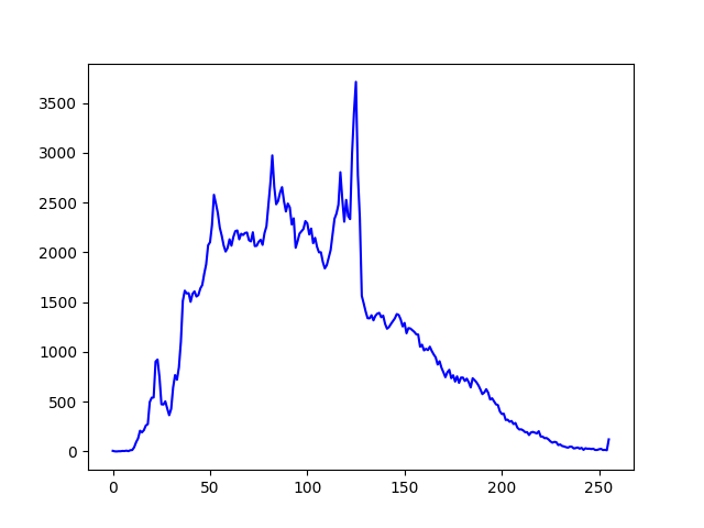 首先绘制蓝色通道的直方图,代码如下:
