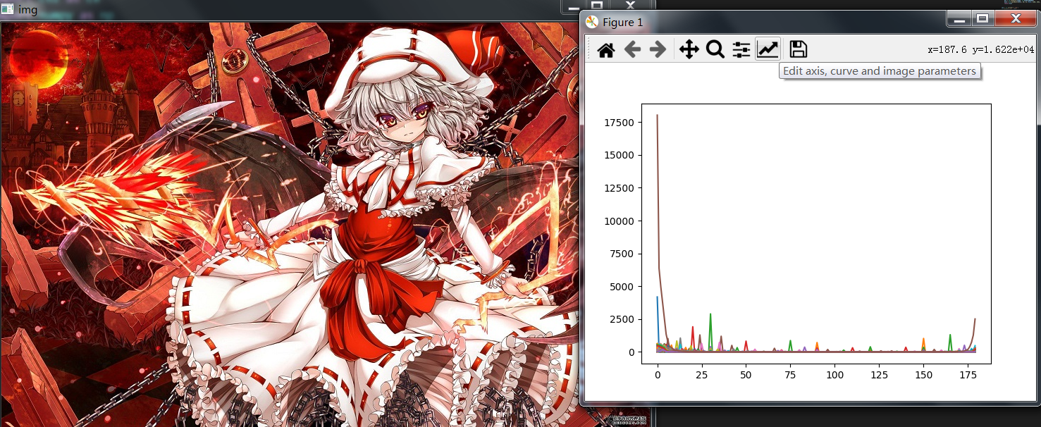 上表红线为橡皮擦标记内容,两个表进行对应。H=25,S=20 还有 H=100-150,S=120-100,可以得出黄色,蓝色,紫色区域高值,对应的原图上,结论差不多。