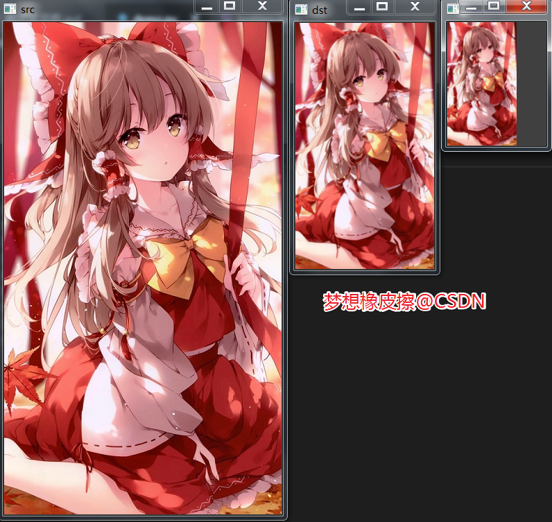 运行代码之后,得到三张图片,大小依次减小,分辨率降低。