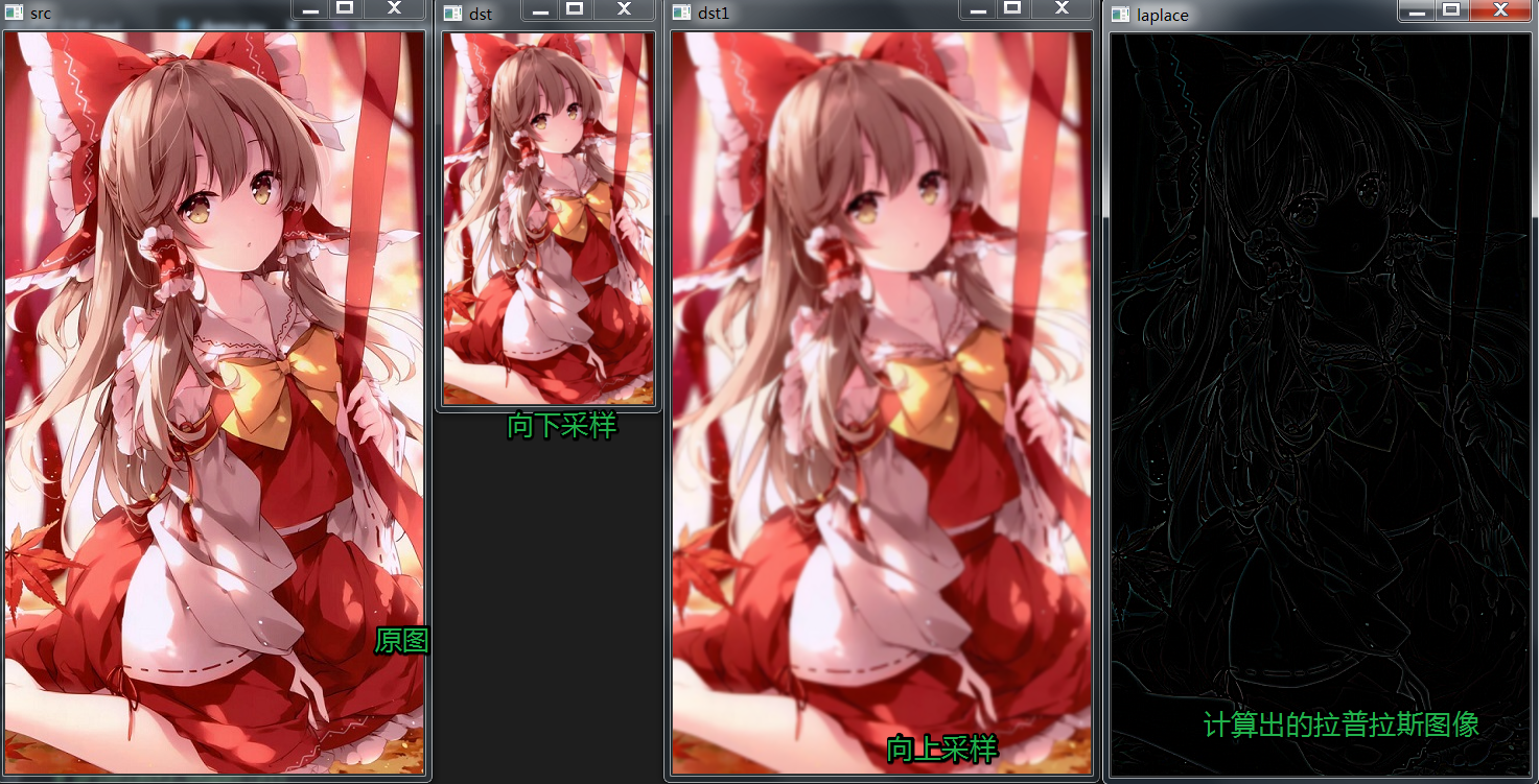 向下采样上面的代码已经实现了,但是拉普拉斯向上采样还未实现,完善一下代码如下,为了代码清晰,我们将变量命名进行修改。