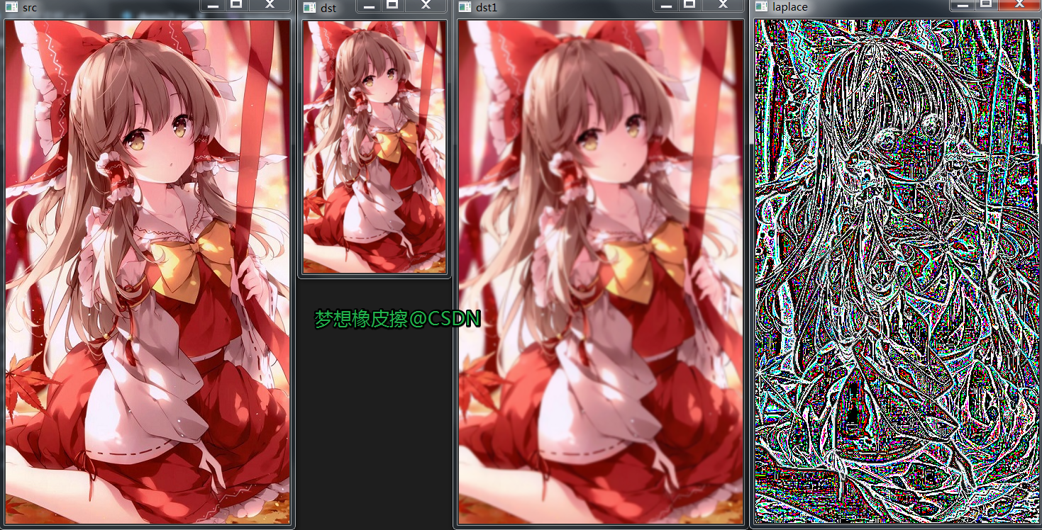 上述代码运行的结果如下,通过拉普拉斯可以完美还原图像。