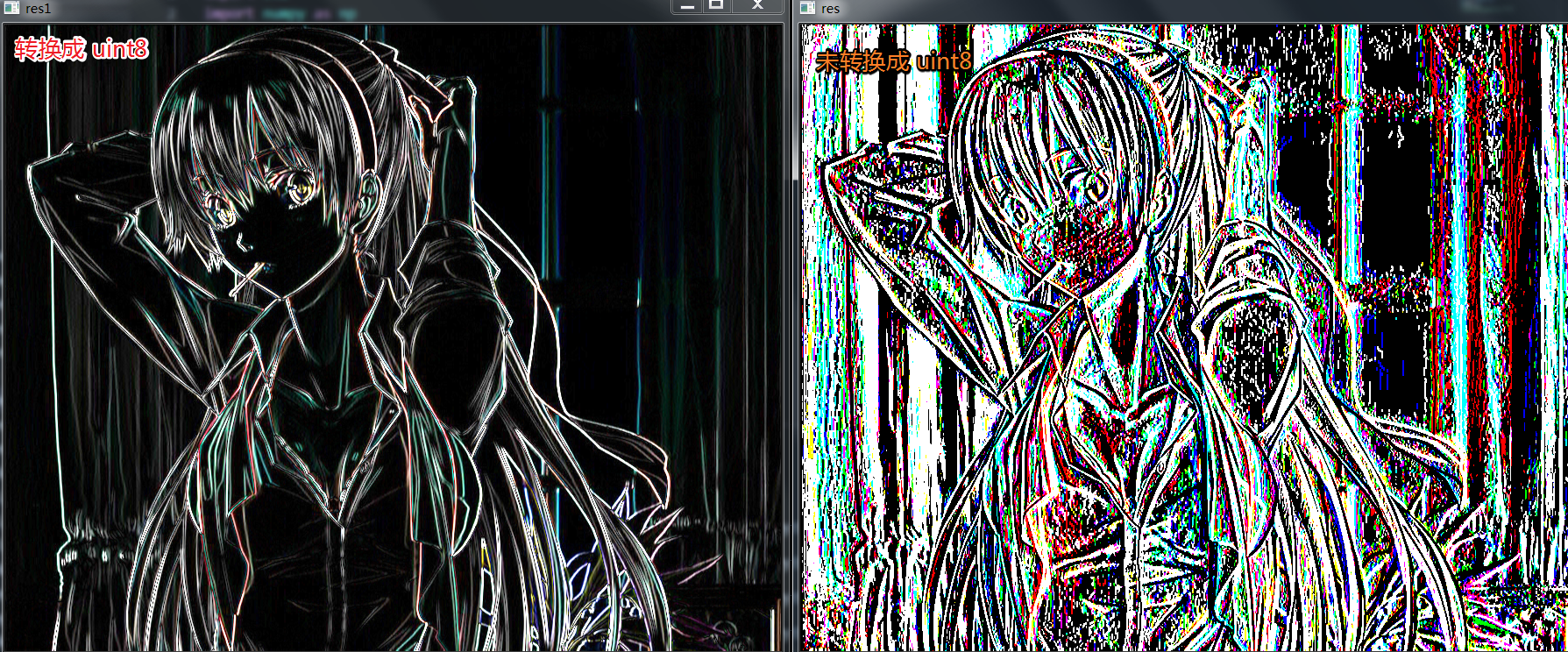 对比一下,转换与没有转换两次运行的效果,右侧明显失去边界值。