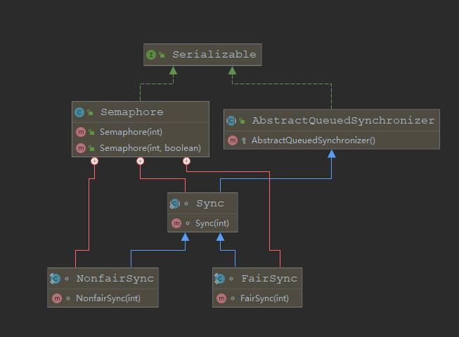 Semaphore 的类结构图如下: