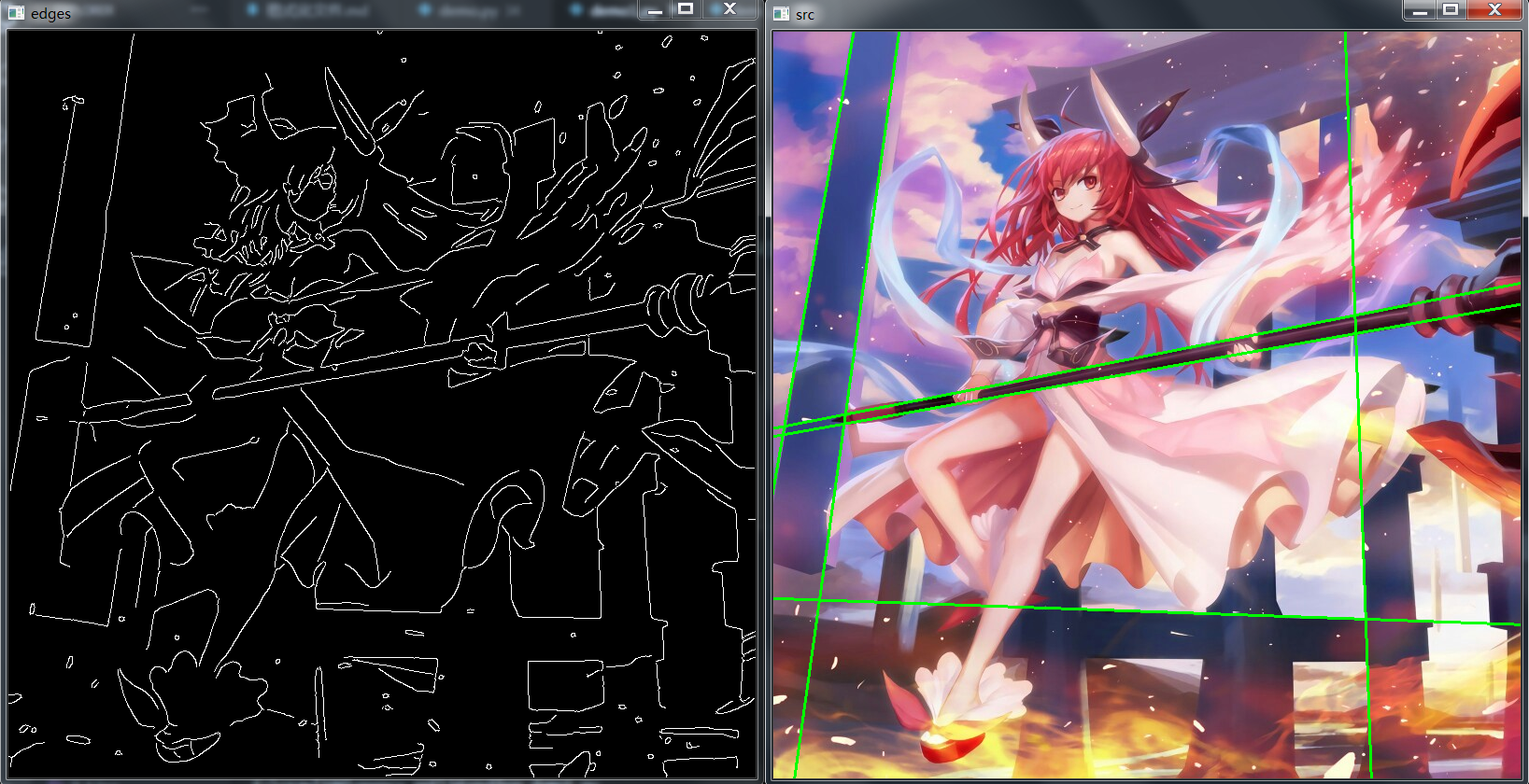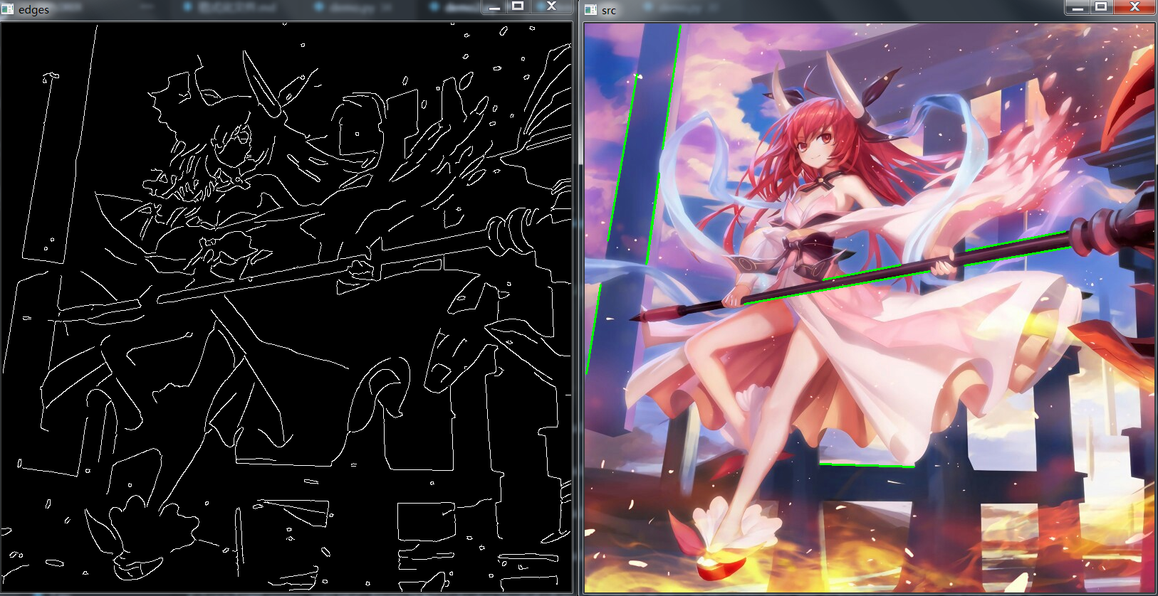 运行代码之后,获取到的边缘如下,下面就可以对直线进行获取了,通过cv2.HoughLines函数。