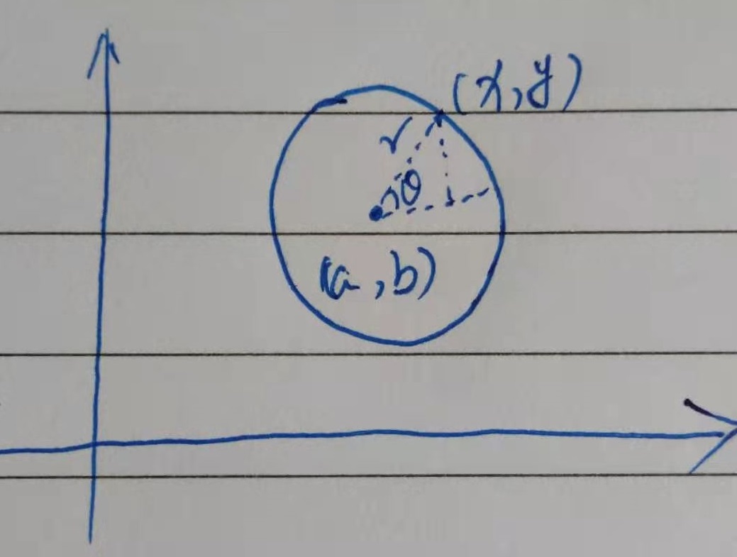 ,其中(a,b)是圆心,r 是半径,具体你可以画一张图表示一下。