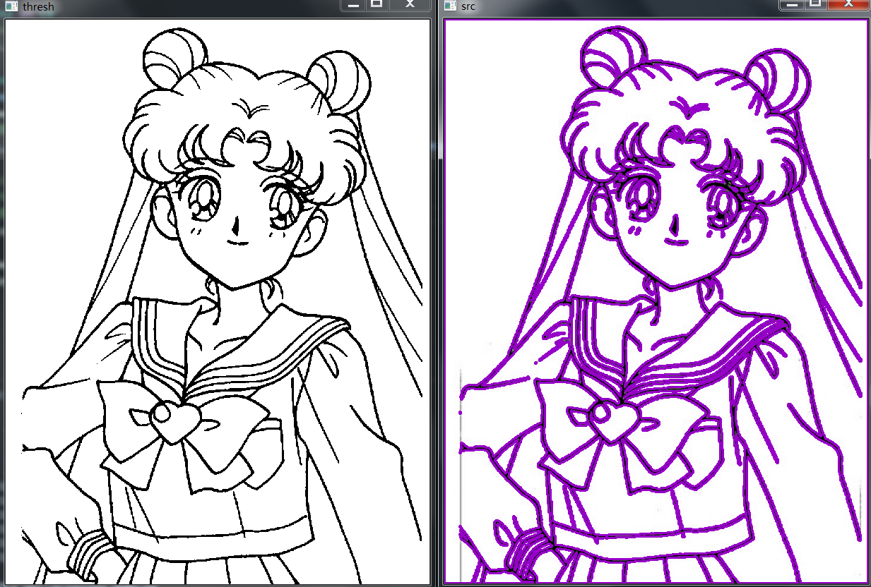 cv.drawContours(src,contours,-1,(200,0,150),2)