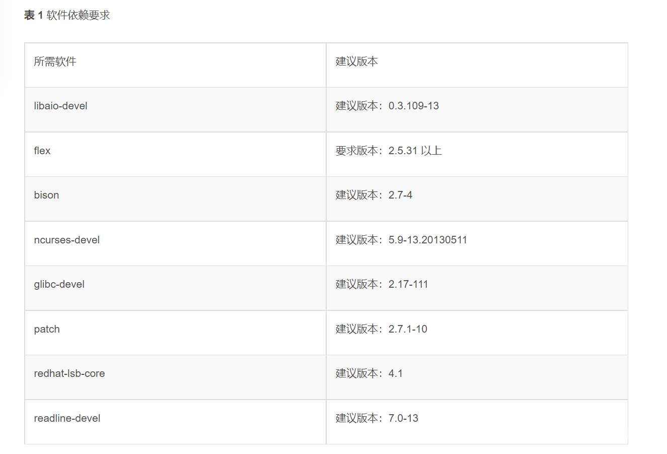 如果严格按照文档要求,那么readline-devel的要求是不符合的。但是貌似在后续的编译过程中,也没因此报错。