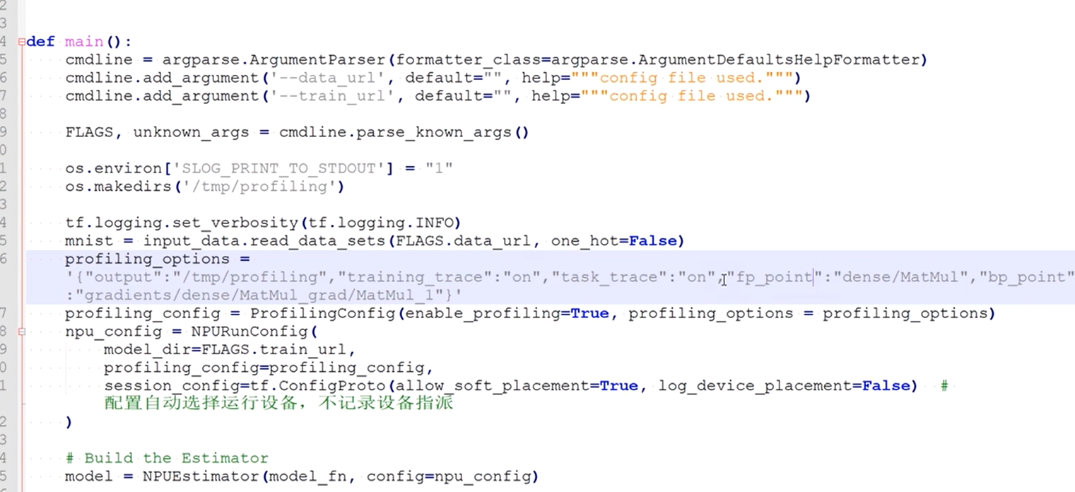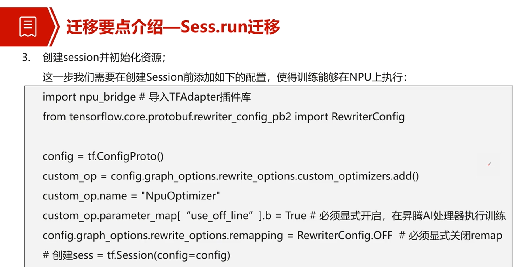 2、 RunConfig要平行迁移,并在前面加上NPU;config要改为npu_config,删掉tf.estimator,并且在头部引用中需在原有基础上加入: