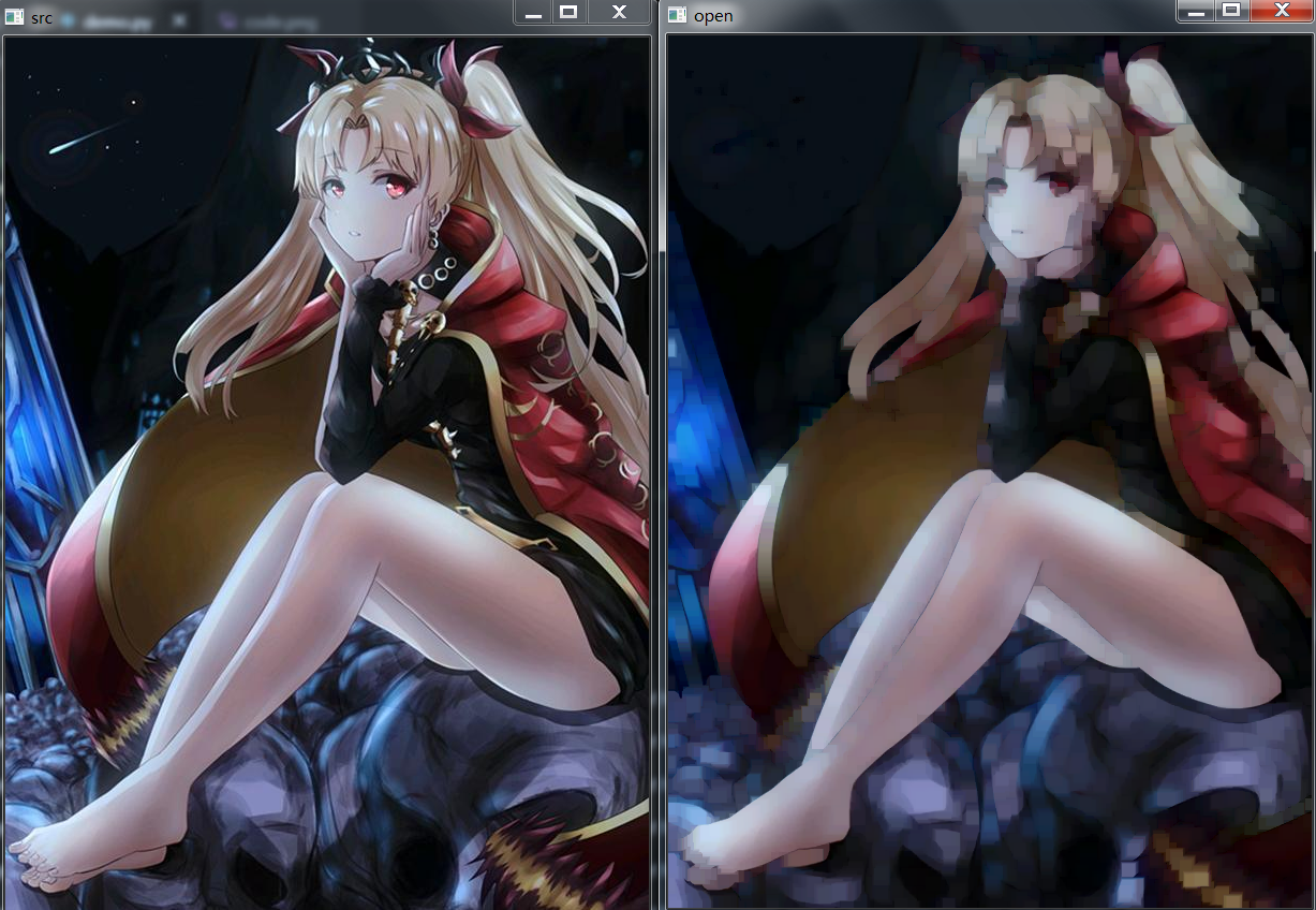 如果将开闭操作直接作用于彩色图像,可以得到油画般的效果,具体如下: