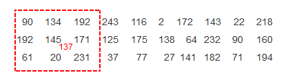 上图红色的 137,就是进行均值滤波之后的结果,计算中心数字 145 周围的 9 个数字之和,然后再除以 9,得到 137,替换掉 145 。