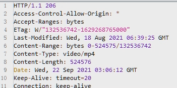 Range参数还支持多个区间,用逗号分隔,这时response的Content-Type不再是原文件mime类型,而用一种multipart/byteranges类型表示。