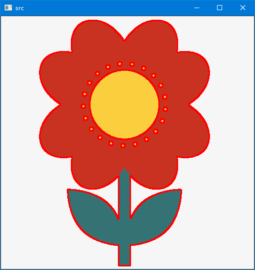 cv.drawContours(src, contours, -1, (0, 0, 255), 2)