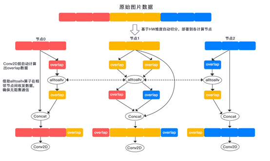 在当前切片的卷积运算前,自动计算出具有相邻切片特征的overlap数据,为当前切片提供上下文信息,保证图片精度。