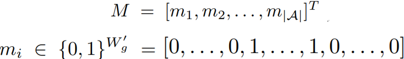 图2 自适应视觉匹配的架构。本文将文本识别问题转化为文本行图片中字形样本的视觉匹配问题。左图:体系结构图。视觉编码器 Φ 嵌入字形 g 和文本行 x ,并生成相似性映射S,该映射S对每个字形的相似性进行评分。然后,解决(潜在)不完全视觉匹配中的模糊性,以产生增强的相似性映射S*。最后,使用M中包含的真实字形宽度,将相似性分数聚合到输出类概率P。右图:说明字形宽度如何编码到模型中。字形宽度带(顶部)的高度与其相应字形示例的宽度相同,其标量值是以像素为单位的字形宽度。字形宽度映射(底部)是一个二进制矩阵,字母表A中的每个字符都有一列;这些列通过将相应的行设置为非零值(=1)来指示字形线图像中字形的范围。