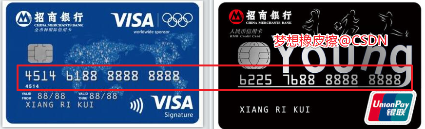 本文的目标是最终获取一套招商银行卡,0~9 数字的图,对于下图的数字,我们需要提取出来,便于后续模板匹配使用。不过下图中找到的数字不完整,需要找到尽量多的卡片,然后补齐这些数字。
