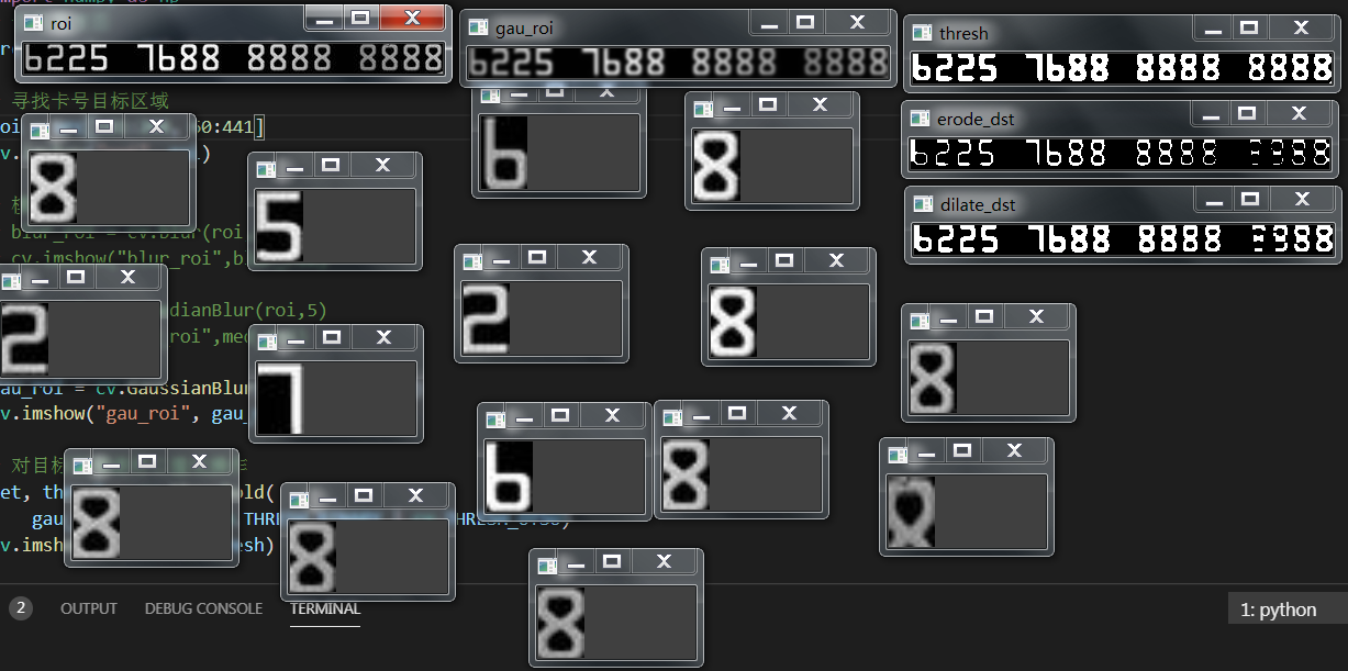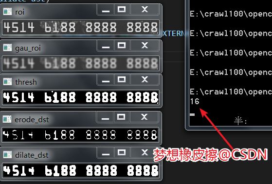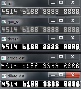橡皮擦最后调整之后,得到的结果如下所示,信用卡卡号识别的第一步算是准备好了。
