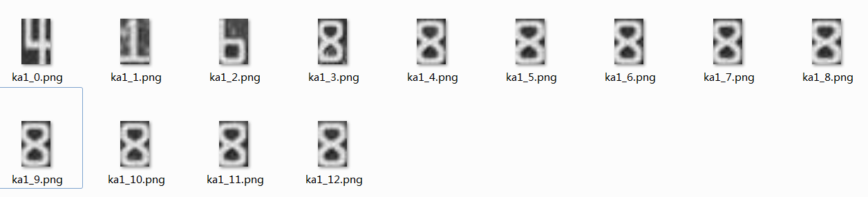 二值化之后,挑选出比较清晰的数字即可,如果发现存在不清楚的,可以在寻找资源进行提取,银行里面 8 真的是太多了。
