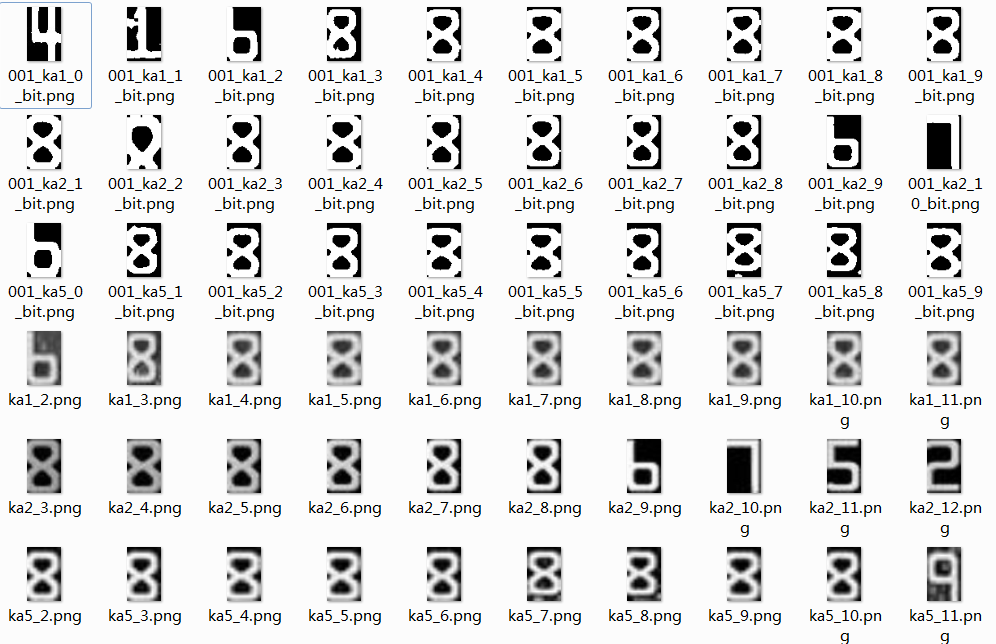 反复迭代这个办法,知道 0~9 个数字获取完整,找到所有数字之后,对该文件夹中的所有文件进行二值化操作。