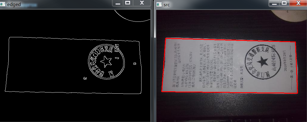 cv.drawContours(src, [screen_cnt], -1, (0, 0, 255), 2)