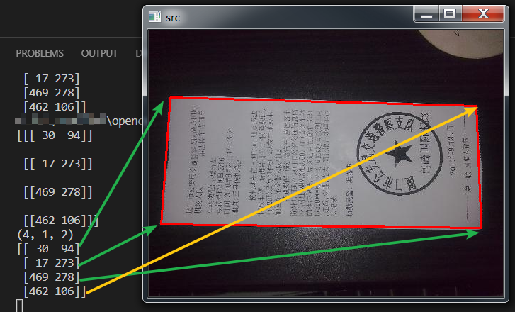 此时,4 个坐标都已经获取到,最后声明一个空矩阵,赋值之后进行返回。