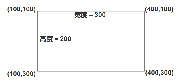 左下点与右上点的计算方式为,使用 np.diff() 函数,计算横纵坐标之差最小找到右上角的点,横纵坐标之差最大找到左下角的点。对应下图可以辅助理解,左下点 300-100 = 200,右上点 100-400 = -300。