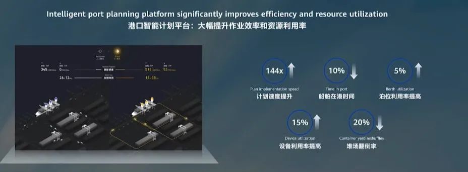 作为世界前十的港口,天津港的年集装箱吞吐量接近两千万箱。为了实现更高的吞吐效率,天津港与华为云合作开发了基于「天筹」AI 求解器的新一代港口智能计划平台。该平台可以帮助天津港通盘考虑港口规划中千万级的约束条件和变量,完成整个港口计划仅仅需要 10 分钟,计划速度最高提升 144 倍。