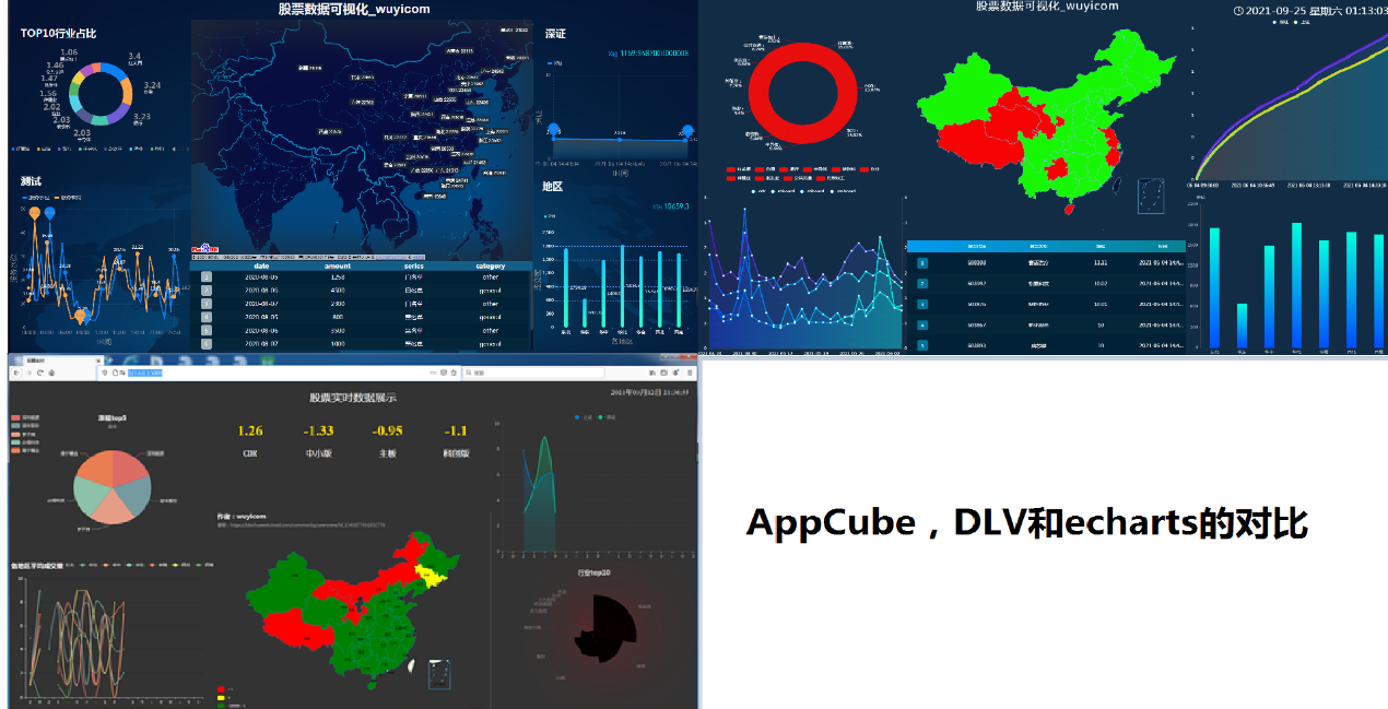 分别使用过APPCube应用魔方,DLV数据可视化或echarts制作过股票数据可视化,根据使用体验,对它们优缺点做一个对比。