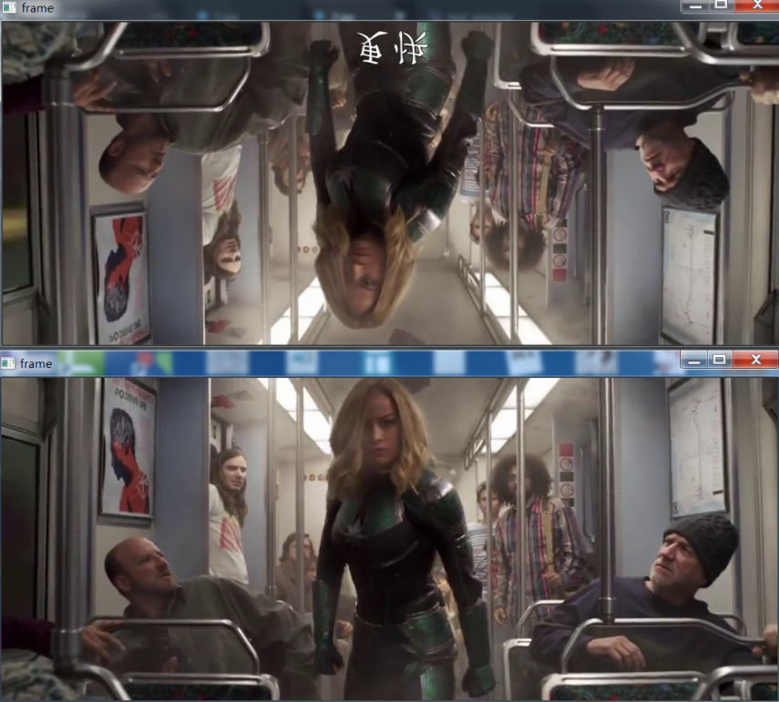 甚至可以直接将视频进行翻转,用到函数为:cv2.flip(frame, 0),