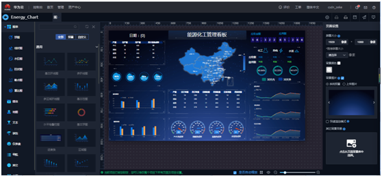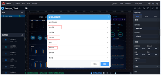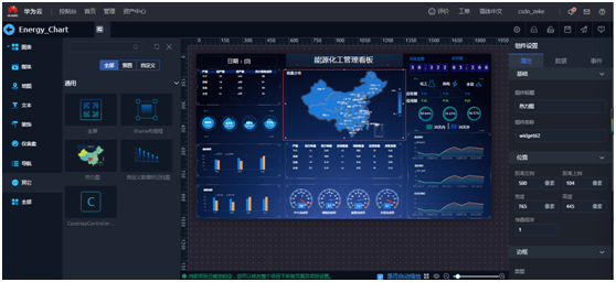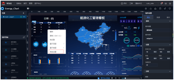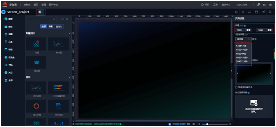 右侧根据屏幕大小自定义设置,左侧打开“组件列表”,就可以拖拽组件进行大屏开发了。