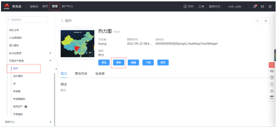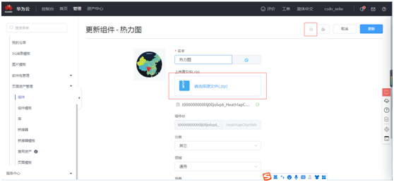 对自定义的“热力图”组件进行修改,这里可以进行下载,更新操作,对下载的源码文件可以进行修改。