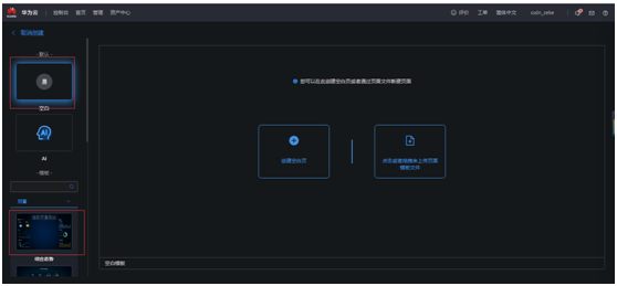 打开“新建页面”以后,可以选择“创建空白页”,“AI”,“预置”里的模板