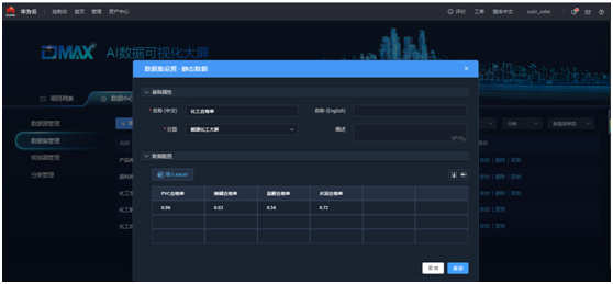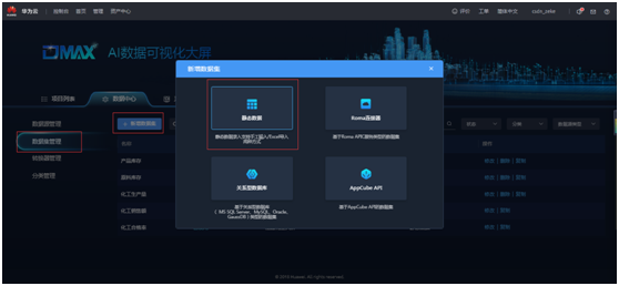 点击“数据集管理”,创建“静态数据”