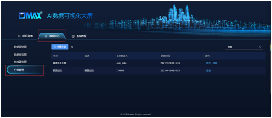 点击“新建分类”,创建一个“能源化工大屏”类型