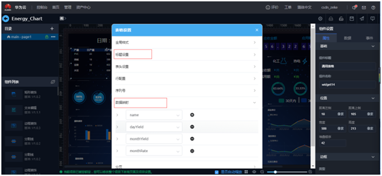 打开表格的属性设置,可以对标题,行,表头,数据映射进行设置