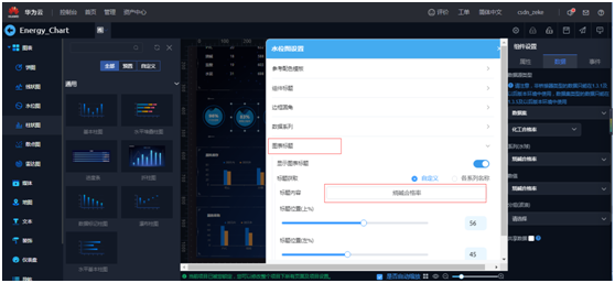 选中“水位图”,右侧组件设置点击“数据”, 数据源类型选择“数据集”,数据集名称“化工合格率”,每一个水位图的“系列”选择一个数据字段进行数据绑定