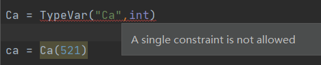 类型变量,主要是为静态类型检查器提供支持,用于泛型类型与泛型函数定义的参数。TypeVar 约束一个类型集合,但不允许单个约束。