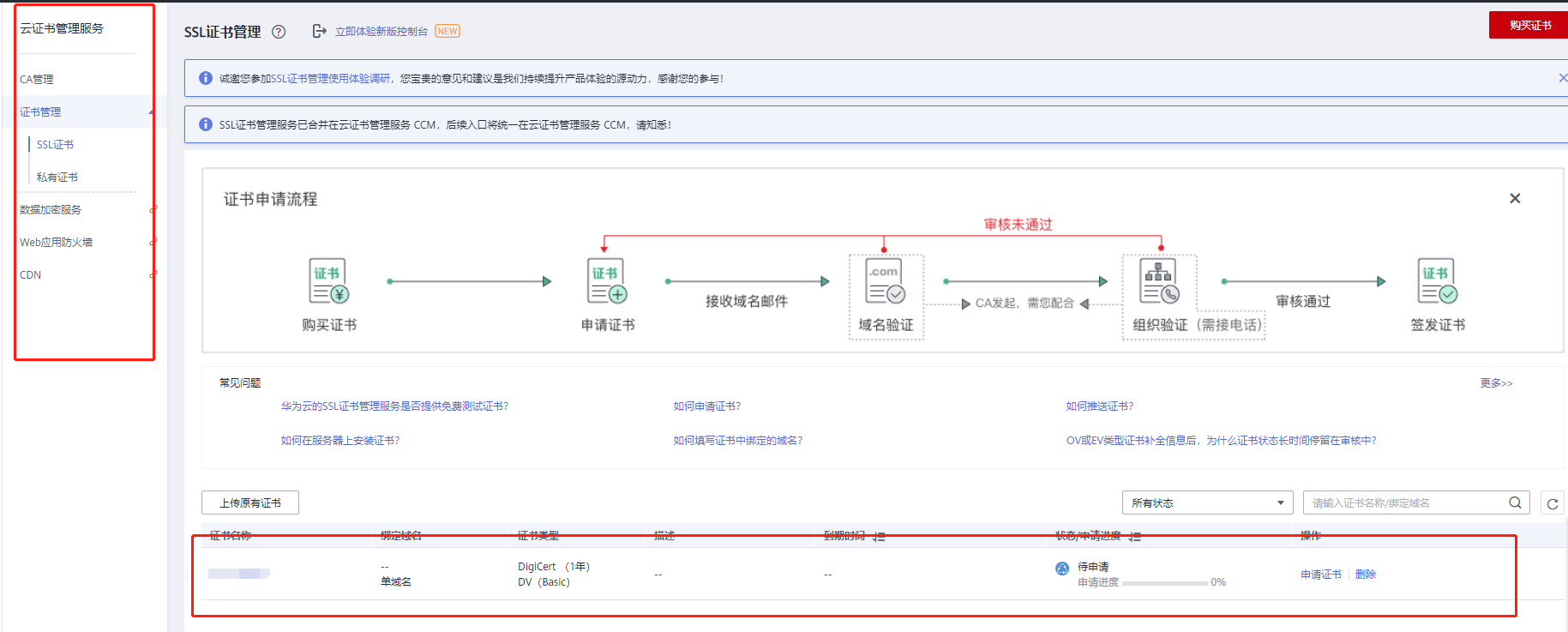 小程序上架域名只支持https,在华为云购买SSL证书的经过