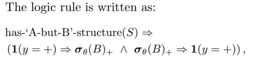 1() 函数标识内部逻辑的正确与否,正确返回 1,错误返回 0;上面这个规则可以直观理解为 but 前后出现情感的转折
