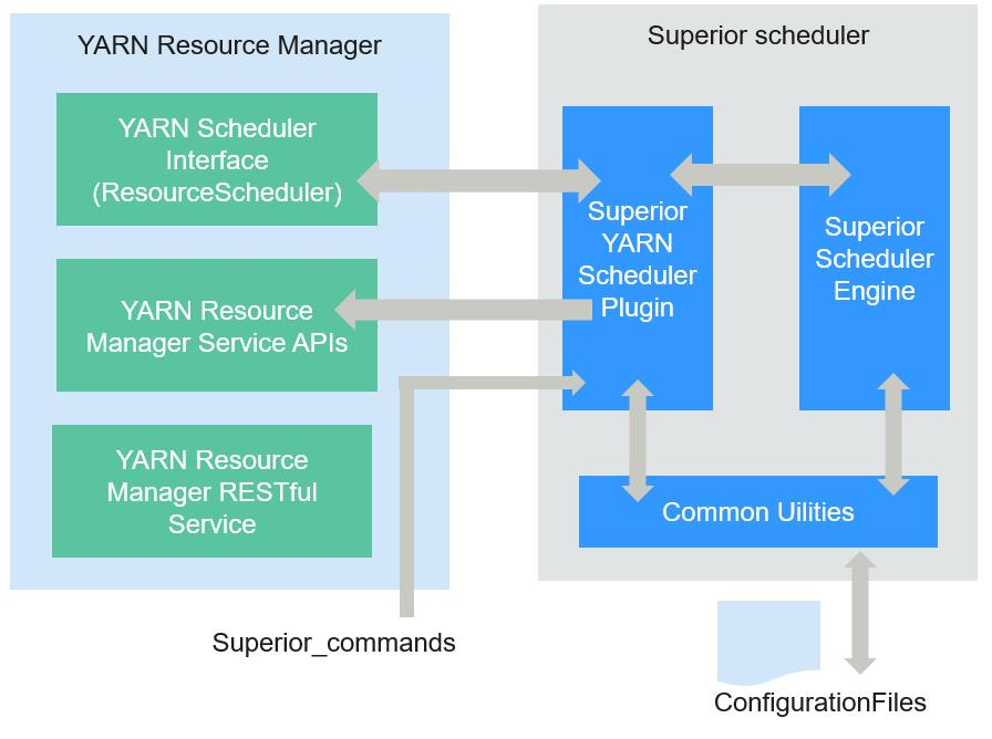 - Superior YARN Scheduler Plugin:YARN Resource Manager和Superior Scheduler Engine之间的桥梁,负责同YARN Resource Manager交互。