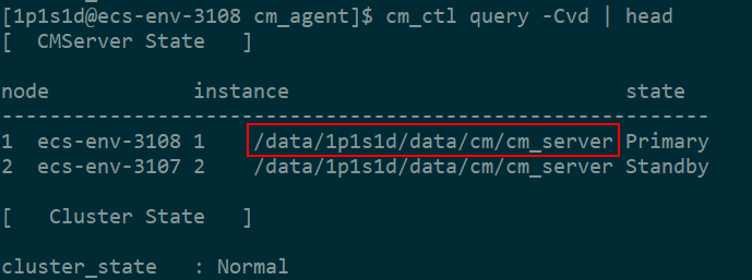 执行 cm_ctl query -Cvd | head 获取 cm_server 的数据目录