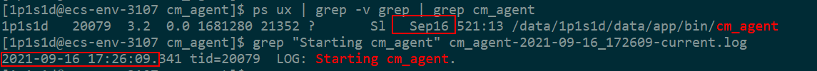 有两种方式查看 cm_agent 进程启动时间