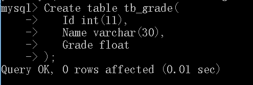 2.创建一个用于存储学生成绩的表tb_grade
