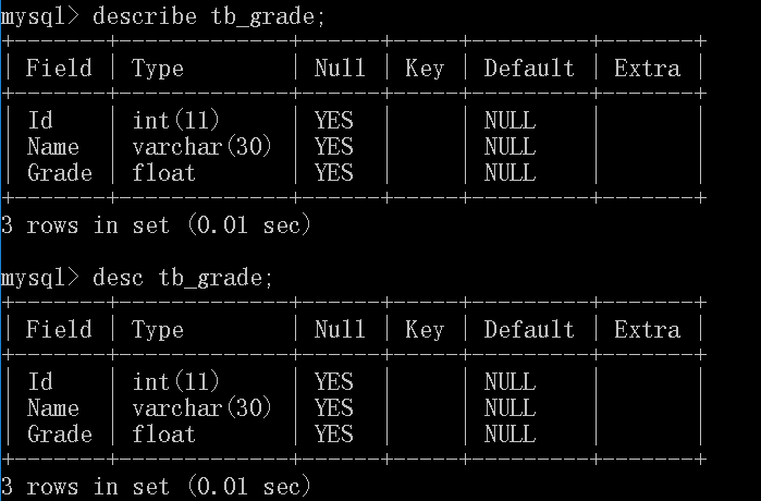 使用DESC查看数据库