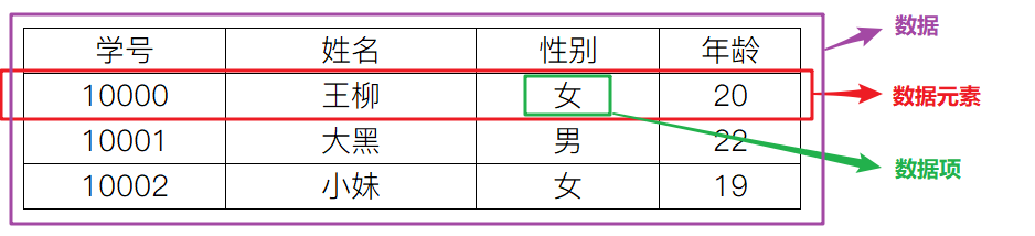 然后元素是由数据项组成的,数据项还叫 字段或者域 ,并且数据项是数据的不可分割的最小标识单位