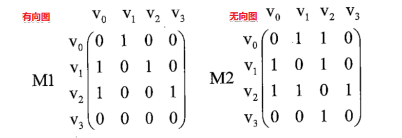 G1有箭头,有向图,表示方法是 V={V~0~,V~1~,V~2~,V~3~} E = {<V~0~,V~1~>,<V~1~,V~2~>,<V~1~,V~0~>,<V~2~,V~0~>,<V~2~,V~3~>}